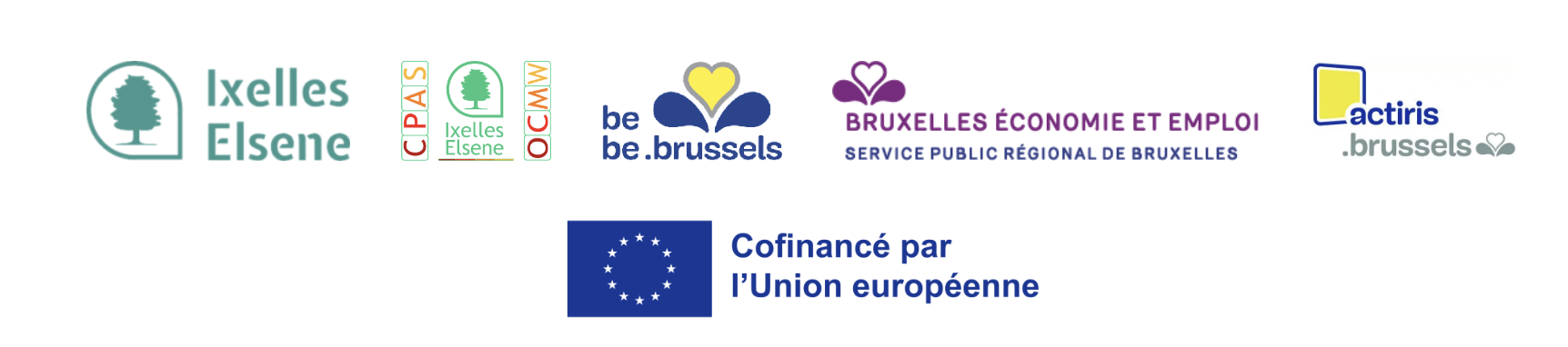 Ce dispositif de formation est rendu possible grâce au soutien du Fonds social européen (FSE), de la Région de Bruxelles-Capitale par l’intermédiaire du SPRB Bruxelles Économie et Emploi, d’Actiris, de la commune d’Ixelles et du CPAS d’Ixelles.