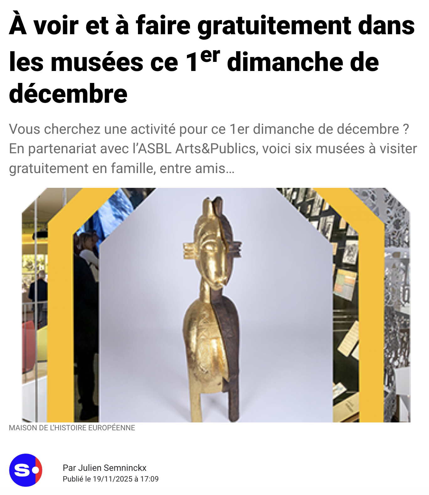 7 Dimanche | À voir et à faire gratuitement dans les musées ce 1er dimanche de décembre Lien vers publication